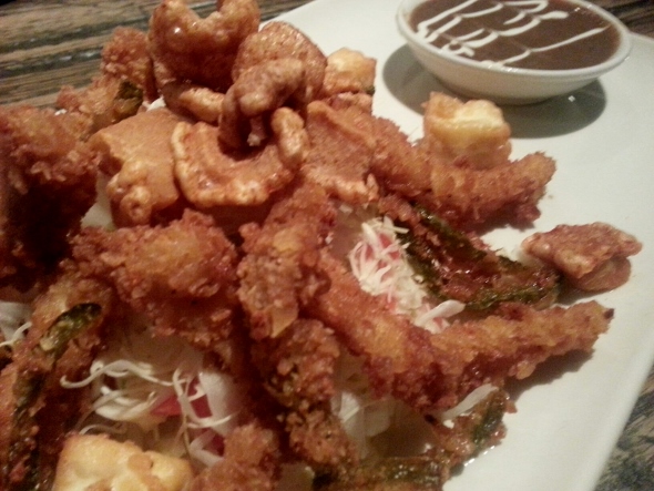 Taquitos, which got their first revolutionary fresh look at Artista with softshell crawfish, take another leap forward on the new Churrascos menu. Here the shells are formed of malanga (South American taro root) chips and filled with pulled pork, pineapple pico and crema fresca. The effect is light and tropical, like beach food in the middle of a multi-zillion-dollar big-city real estate development. And the wood its served on reflects the rustic, reclaimed feel of table and wall at every turn in the restaurant.