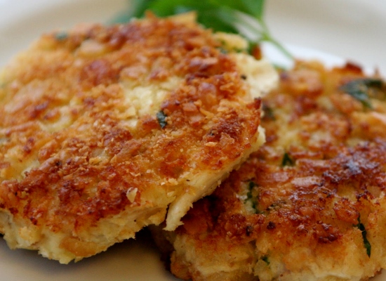 In a cast-iron skillet or deep fryer, heat oil to about 350 degrees. Just before frying, thoroughly dust each catfish cake with flour. Fry the cakes in the hot oil until they are golden brown all over, rolling them frequently. Depending on your frying apparatus, this should take about 3 to 4 minutes. Drain the cooked catfish cakes on paper towels. Best when served immediately, but you can reserve them in baking dish in a warm oven until ready to serve. Serve with your favorite tartar sauce. Makes 8-10 cakes.