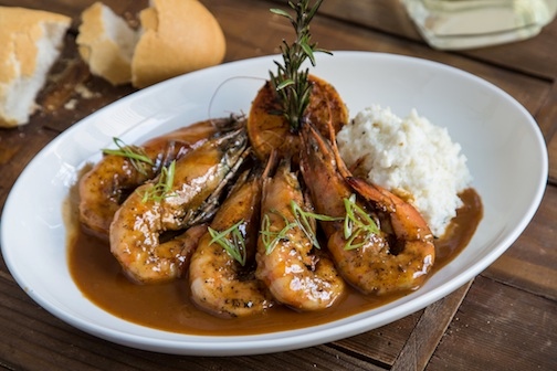 As a result, Dickie Brennan and Co bought a piece of the historic Le Petit building - a piece that had the good sense to form the corner facing Jackson Square - and started turning it into a classic New Orleans restaurant. As a result, Le Petit not only could reopen with a season that includes such diversities as Hair and Death of a Salesman but could bank some of the money as an endowment for the future. How not New Orleans is that? And also as a result, you can now enjoy this sterling performance of BBQ Shrimp right up until the show’s about the start.